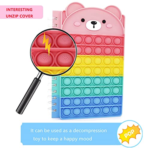 7iper Pop Fidget It Notebook, Push Bubble A5 Sprial Notebook Fidget Toys, simpatici quaderni con composizione, quaderni a righe universitarie, protable per regali scolastici e ufficio (macaron Bear)