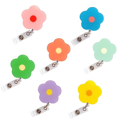 7PCS Bobina Porta Badge a Forma di Fiore,Porta Badge a Scomparsa Retrattile con Clip per Nome Identificativo,Accessori per Cordini Colorati per Bobina per Badge per Infermiere,Insegnanti,Impiegati