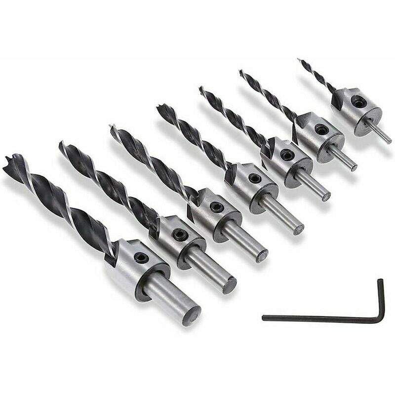 Informazioni su questo articolo. SpcialemConu - Frese in acciaio o foro pilota. La foratura e la svasatura in un unico passaggio non si abbassano e la foratura può essere eseguita rapidamente con precisione. Posizionamento rapido e rimozione del truciolo - Fresa conica a 5 denti, rimozione più rapida della segatura, posizionamento a tre punti, difficile da scivolare, quasi perforante e veloce. Staccabile e regolabile - Profondità regolabile del manicotto con una chiave esagonale, la lunghezza della perforazione può essere regolata utilizzando una chiave per rimuovere o regolare la vite di fermo. Durevole acciaio ad alto tenore di carbonio: acciaio al carbonio trattato termicamente e temperato con rivestimento in titanio per una potenza di taglio superiore. Applicazione - Adatto per l'uso su pannelli in legno, PVC e plastica. Non adatto per vetro, lastre di ferro e lastre di acciaio.