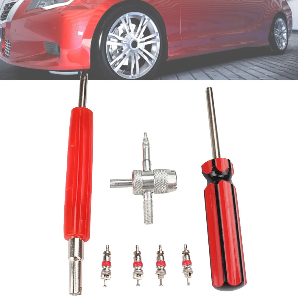 7Pcs Portable Tire Valve Stem Removal Tool Tire Repair Tool Valve Core Removal Tool Tire Cleaning Tool for Motorcycles cars