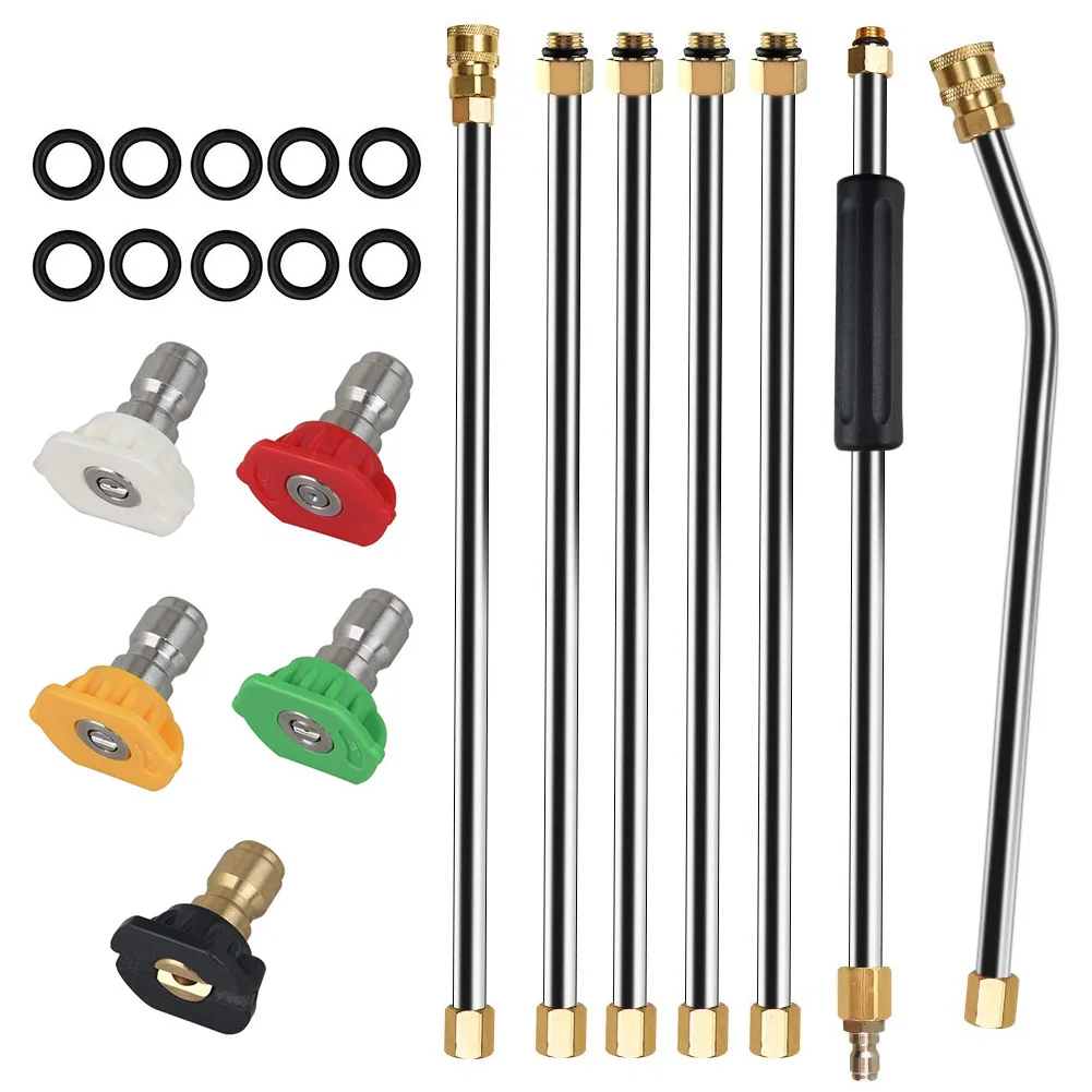 7pcs Tool Universal Rod Replacement Extension Wand Set Car Washing With Spray Nozzle Stainless Steel Pressure Washer Lance Home