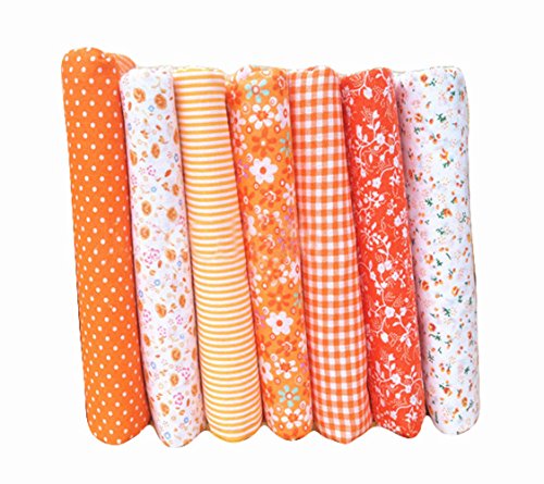 7PCS twill tessuto di cotone per cucire patchwork scampoli di tessuto trapunta DIY Needlework panno 50 cm x 50 cm (arancione)