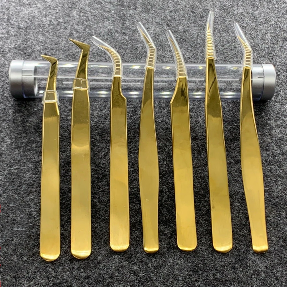 7pcs/lot Eyelash Extension Tweezers Volume Lashes Stainless Steel Tweezer Non-magnetic Eyelashes Tools Professional Makeup Tool