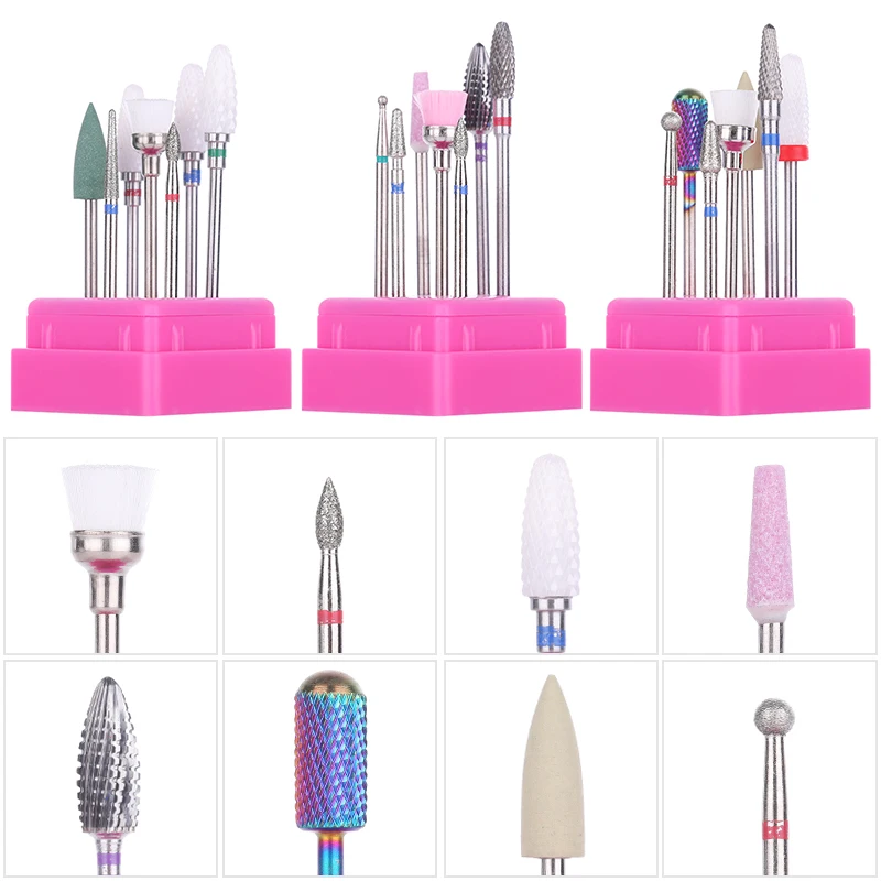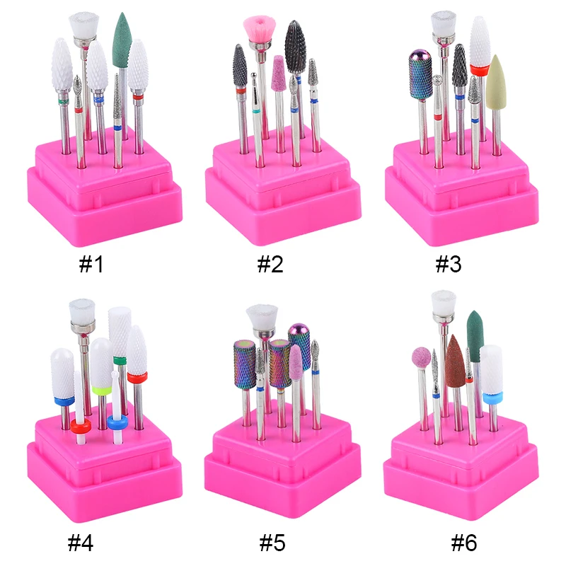 7Pcs/Set Nail Drill Bits Polishing Remove UV Gel Mixed Sizes Toes Finger Nails Sanding Tools for Nail Design Accessories