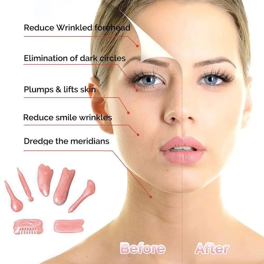 7pcs/set Natural Resin Amber Massage Scraping For Face Beeswax Acupressure Therapy Scrape Massager Neck Acupoint Scraper Gu B4N0