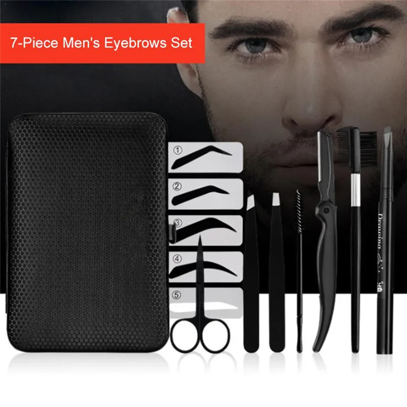 7Pcs/Set Professional Eyebrow Tool Mirror Tweezer Eyebrow Trimming Set for Men Make Up Tool Kit