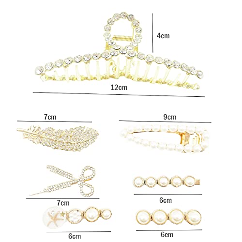 7Pezzi Mollette per Capelli Donna Perle per Pinza Capelli Grandi Fermagli Forcina Strass in Metallo Accessori Styling Capelli