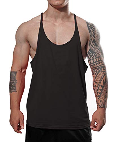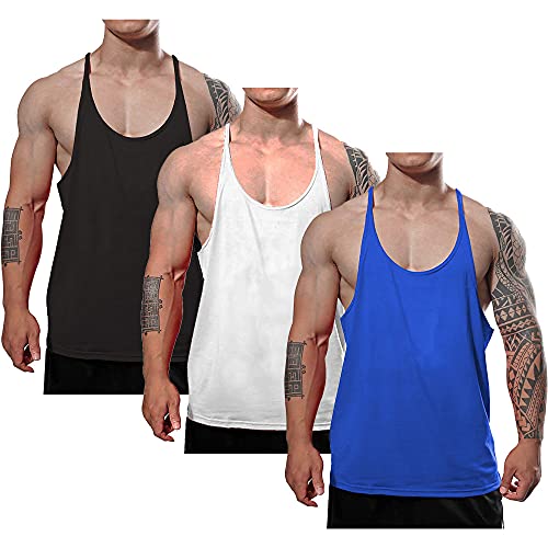 7Power Canottiere da Uomo Muscle Gym Stringer per Allenamento Bodybuilding Sport Vest Racerback Cotton Color Black+White+Blue Size L