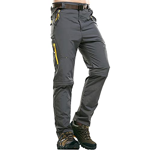 7VSTOHS, pantaloni da uomo con cerniera, leggeri e convertibili da trekking, pantaloni casual Grigio S