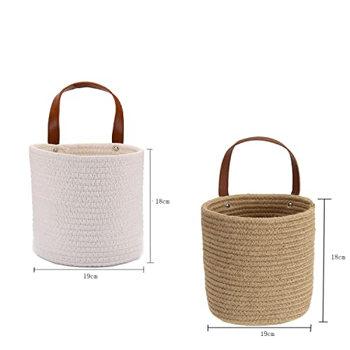 7WUNDERBAR Cestini portaoggetti Cesto da parete Cesto sospeso con manico in pelle PU Confezione da 2 cesti per piante in vaso di fiori, Cesto in