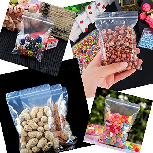 La confezione include: 500 buste piccole autosigillanti in plastica trasparente da 7x10 cm + 100 buste autosigillanti in plastica trasparente da 10x15 cm. Queste mini borse portaoggetti con cerniera sono realizzate in plastica per alimenti. Nessun odore e molto resistente.