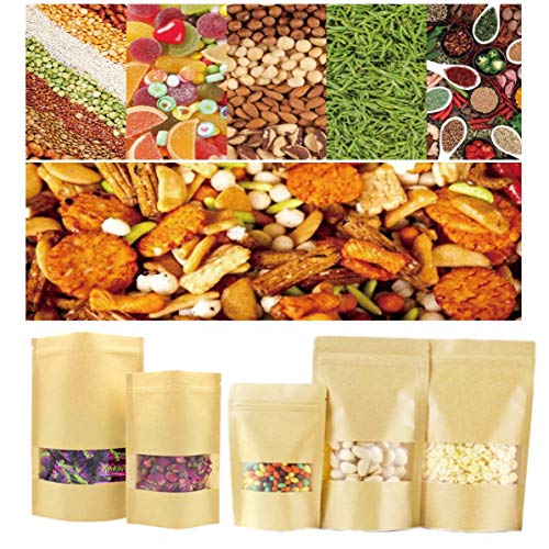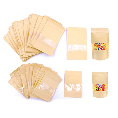 JZK 7x10cm + 10x15cm, 100 x piccoli sacchetti kraft piccoli richiudibile con finestra per confetti bustine carta kraft con chiusura ermetica con fondo per bomboniere confettata spuntini