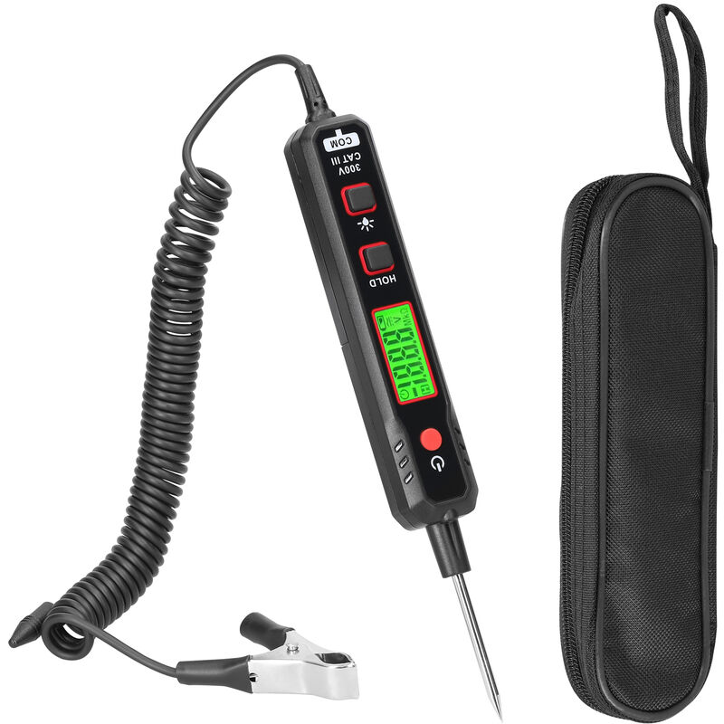 Questo tester di tensione a penna è di dimensioni compatte, con schermo LCD retroilluminato verde, adatto per la misurazione in vari ambienti. Design multifunzione, può essere utilizzato per il rilevamento della tensione CA/CC in tempo reale, il rilevamento della resistenza, il rilevamento on/off e con la funzione di conservazione dei dati per soddisfare le diverse esigenze. Con la funzione di blocco dei dati, è possibile premere il pulsante HOLD per bloccare i dati, quindi premere per rilasciare il blocco. Ampie applicazioni, facile trovare il guasto del cablaggio dell'auto, trovare fusibili, controllare il cablaggio, alimentazione/ACC facile da risolvere. Caratteristiche: Dimensioni compatte, leggero e portatile, facile da trasportare e non occupa spazio. Schermo LCD a definizione chiara con retroilluminazione verde, adatto per la misurazione in vari ambienti. Design multifunzione, può essere utilizzato per il rilevamento della tensione CA/CC in tempo reale, il rilevamento della