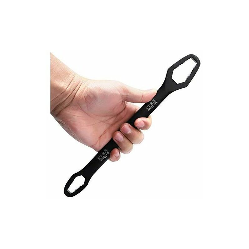 Realizzato con materiali di alta qualità: - La chiave è realizzata in acciaio forgiato al cromo vanadio di alta qualità, con elevata durezza e super durata. Può sopportare molti anni di utilizzo e lavoro. Non sarà facile arrugginire e macchiare. Questa chiave solida potrebbe garantire le sue eccellenti prestazioni per lungo tempo. Anche dopo un lungo periodo di utilizzo, una chiave forte può ancora funzionare bene. 【Design portatile:】 Esistono due gamme di specifiche per chiavi a doppia estremità, l'estremità più piccola è adatta per dadi e da 8 mm a 13 mm bulloni e l'estremità più grande si adatta a dadi e bulloni da 14 mm a 22 mm. Questo design speciale migliora notevolmente l'ambito di applicazione della chiave e può soddisfare le diverse esigenze. 【Design antiruggine:】 Con il trattamento termico generale e il trattamento di placcatura lucidante, questa superficie della chiave spray è completamente anticorrosiva e anti -ruggine. Puoi usarlo liberamente in qualsiasi occasione di
