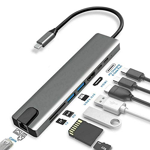 8-in-1 USB-C Hub Tipo-C Multiport Lettore di Schede Adattatore 4K HDMI USB3.0 SD/TF Card Reader 87W PD Per MacBook Pro