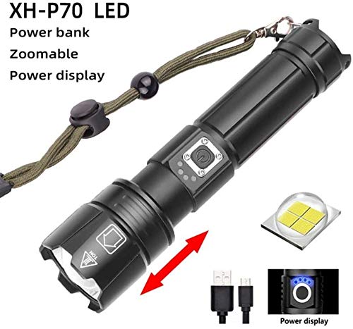 8000 Lumen XHP70.2 Torcia LED Super Luminosa Tattica Torcia USB Ricaricabile Palmare Zoom 5 Modalità Torcia Impermeabile Torce con Indicatore di Alimentazione per Campeggio