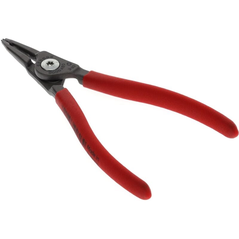 DIN 5254 forma A, Becchi diritti, Con molla d'apertura collocata all'interno, Corpo di base della pinza in acciaio speciale bonificato cromo vanadio di GEDORE, Punte presse in acciaio per cuscinetti volventi altamente resistente all'usura, Geometria della punta destinata ad evitare la torsione, Giunto avvitato, Grigio acciaio, con maniglie antiscivolo di color rosso, verniciate ad immersione, Grigio acciaio, impugnature antiscivolo con rivestimento protettivo blu Processo di tempra ölgehärtet und angelassen Larghezza totale [mm] 71 mm Lunghezza della testa 39 mm Peso netto [kg] 0,09 kg Certificato VDE 0 Diametro dell'albero [mm] 3-10 Versione non scintillante Nein Dimensioni dell'imballaggio 1 Contenuto (numero di pezzi) 1 tlg. Materiale (F) Chrom-Vanadium-Stahl Standard DIN 5254 - Form A Diametro dell'albero [pollici] 5/32-3/8 Altezza totale [mm] 11 mm Molla di apertura presente 1 Paese di origine Österreich Lunghezza totale 245 mm Punta-Ø 0,9 mm Design della maniglia tauchisoliert