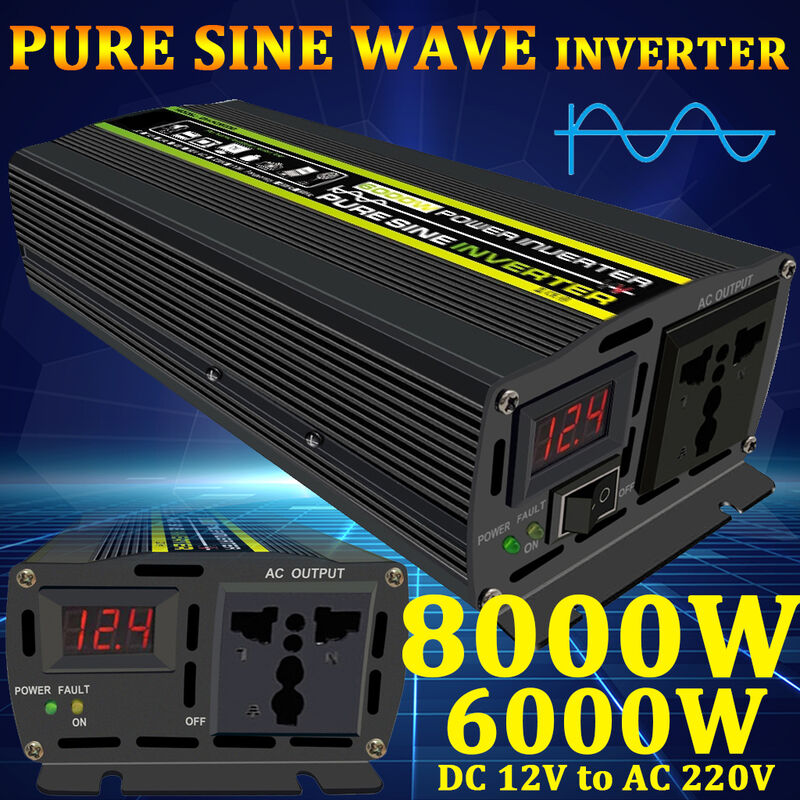 Specifiche tecniche:-Nome: inverter di potenza a onda sinusoidale pura-Tensione di ingresso: DC 12V per auto (9.8 ~ 15V)-Tensione di uscita: AC 220V (210 ~ 230V)-Frequenza di uscita: 50Hz-Potenza Peaks: 3000/4000/6000/8000W-Potenza nominale: 500/800/1000/1300W (assicurati che la potenza nominale totale dei dispositivi collegati sia ≤ 500/800/1000/1300W)-3000W dimensioni del prodotto: muslimate-4000W dimensioni del prodotto: muslimate-6000W dimensioni del prodotto: muslimate-8000W dimensioni del prodotto: muslimate-Massimo attivo Surge Rating (inferiore a 1 secondo):3000/4000/6000/8000W-Corrente ca massima per presa: 8.33Ampere-Forma d'onda di uscita: onda sinusoidale vera/pura