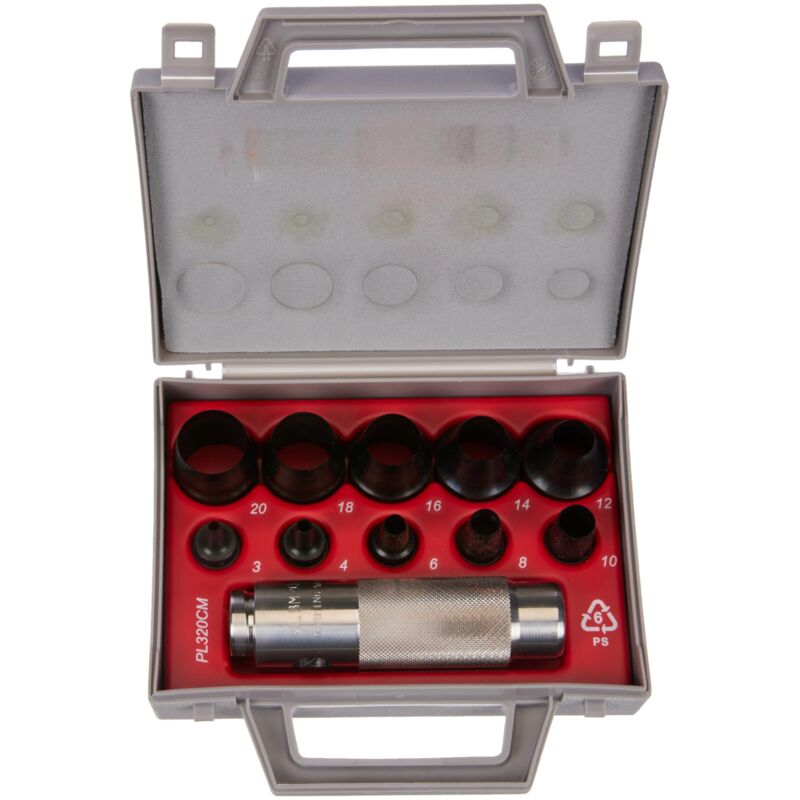 Descrizione Nuovo strumento brevettato per perforare il ferro da stiro a 3 - 20 mm Ø 3 - 4 - 6 - 10 - 12 - 14 - 16 - 18 - 20 mm Ø 3 - 6 - 8 10 - 12 - 14 - 16 18 20 20 20 mm LIFE TIME NUOVA Testa di impatto rinforzata (testata in condizioni estreme) New Reinforced Impact Head (tested under stress conditions with our testing machine). Pratica conservazione/pratica conservazione. Grazie al nuovo foro per appenderlo, lo strumento può essere facilmente appeso / con un gancio per appendere alla fine del nuovo manico, lo strumento può essere appeso facilmente al workbench.Design ecologico/design ecosostenibile con meno acciaio e componenti in plastica, riciclabili. Nuovo strumento designed /Nuovo strumento Realizzato con parti in acciaio e plastica senza parti che possono essere riciclate.