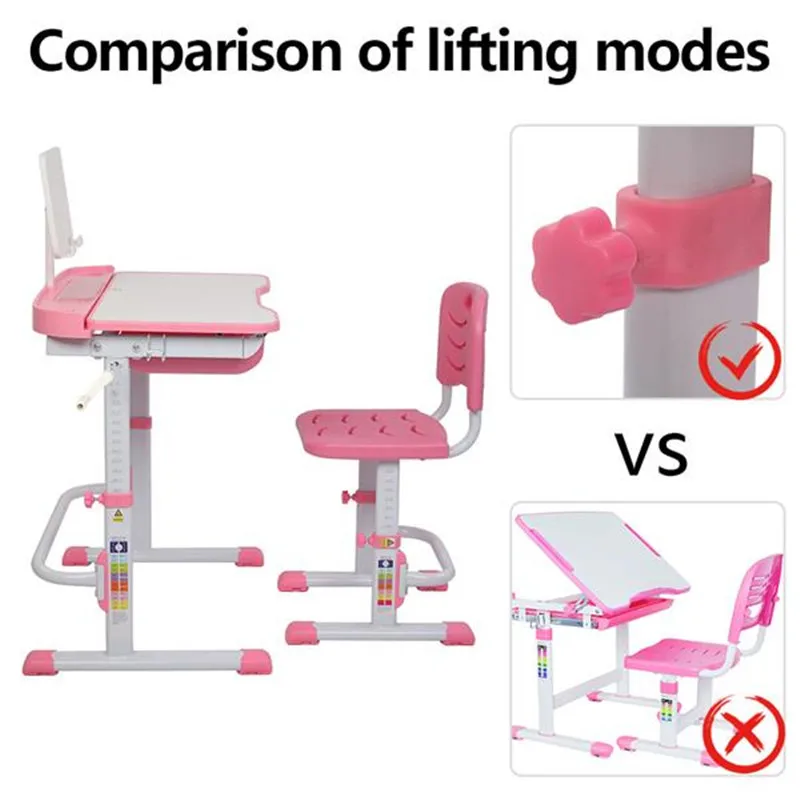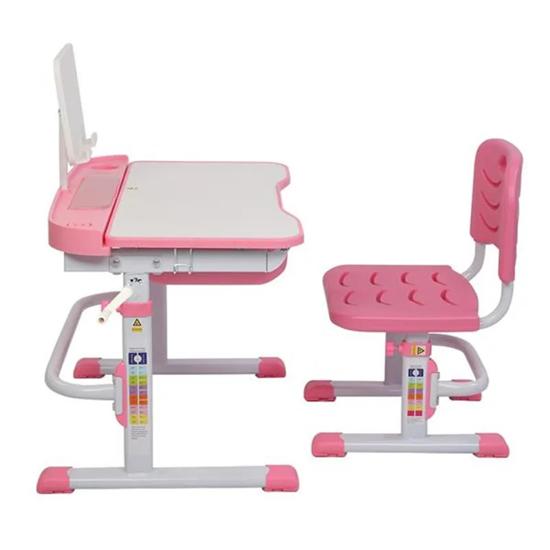 80Cm Hand-Operated Lifting Table Top Can Tilt Children's Study Table And Chair Pink (With Reading Frame Without Lamp)