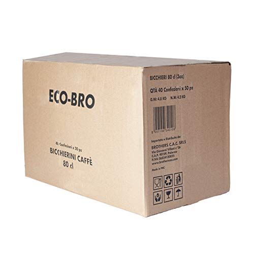 ECO BRO 100/200/300/500/1000/2000 PCS 80ml Tazzine Caffe Bicchierini Caffe Bicchieri Carta Biodegradabile Bicchiere Compostabile (2000)