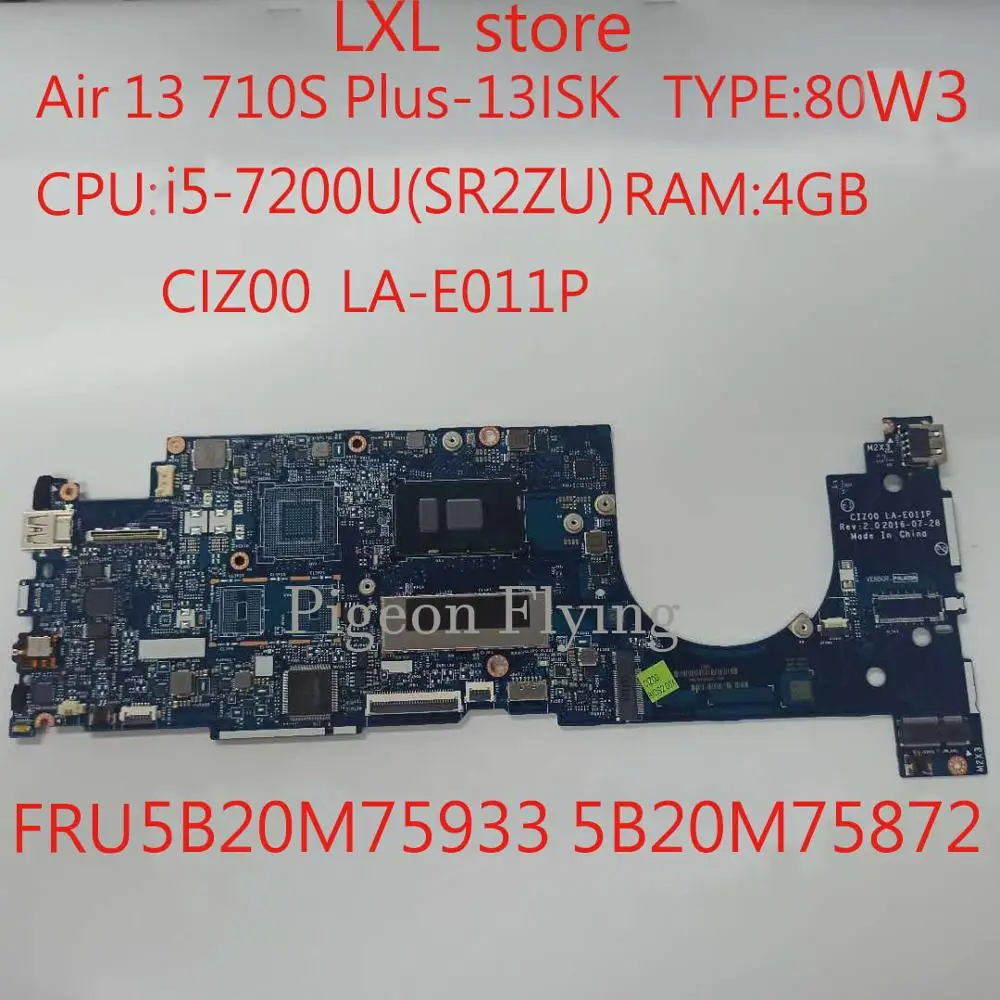 80W3 for lenovo laptop 710S Plus-13IKB Air13 motherboard Mainboard CIZ00 LA-E011P CPU:I5-7200 RAM:4G FRU 5B20M75933 5B20M75872