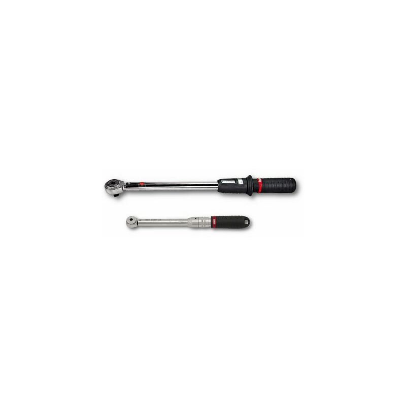 Caratteristiche chiave dinamometrica 811 N Usag: Capacità 40-200 Nm Risoluzione 0,5 Nm Attacco quadro maschio 1/2 Lunghezza 475 mm Modello a coppia regolabile per serraggi destrorsi Precisione ±4% del valore di coppia impostato Scala di lettura in Nm Segnale sensitivo e sonoro al raggiungimento della coppia impostata Riarmo automatico al rilascio dopo il disinnesto Fornita con certificato di collaudo