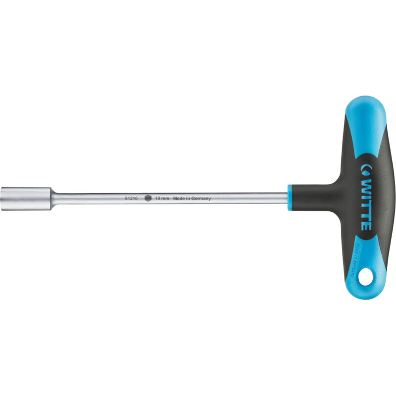 · Cacciaviti con impugnatura a "T". · Manico bicomponente nero/blu. · Stelo in acciaio speciale alto legato, cromato opaco e con dimensioni acidate.