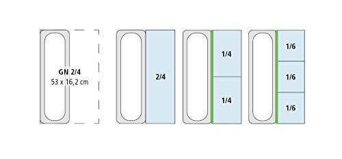 DATI: Questo contenitore GN 2/4 ha una dimensione di 160 x 530 mm;
