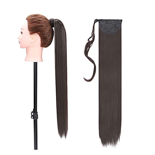 81cm Super Lungo Coda di Cavallo Extension Capelli Veri Wrap Around Ponytail Clip nel Parrucchino per Donne Marrone scuro