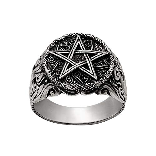 81stgeneration Anello con Sigillo Uomo Donna in Argento Sterling .925 Pentacolo Fuoco