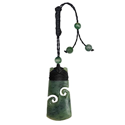 81stgeneration Collana Pendente Unisex Intagliato a Mano Giada Nefrite Pietra Verde Maori Doppio Koru Toki