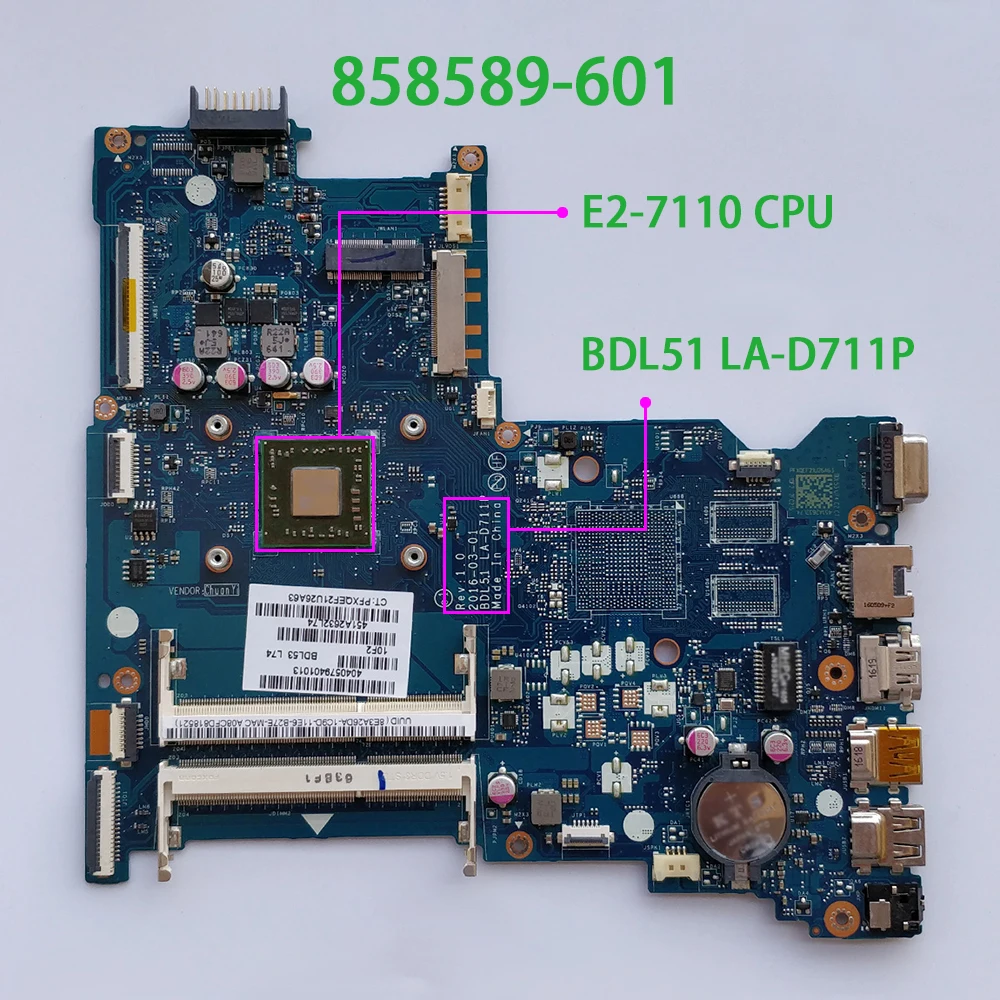 858589-601 858589-001 BDL51 LA-D711P UMA w E2-7110 CPU for HP 255 G5 Notebook PC Laptop Motherboard Mainboard