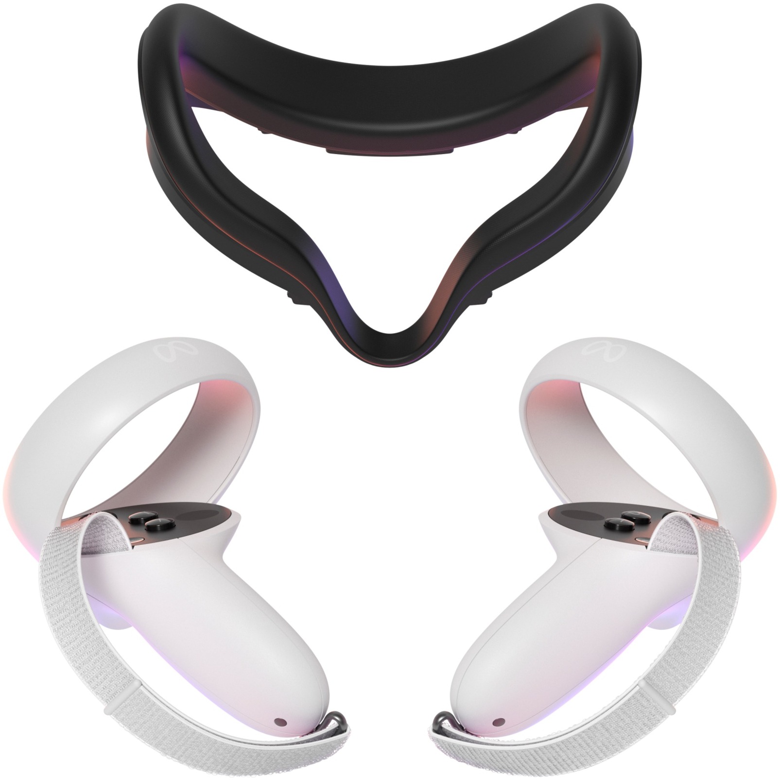 Nel Meta Quest 2 Active Pack, un inserto per cuffie rimovibile, cinghie per le mani e passanti regolabili sul dorso della mano offrono la perfetta combinazione di comfort e controllo. Quando le cose si mettono al lavoro in VR, i passanti da polso e gli anelli regolabili sul dorso assicurano che i controller siano sempre saldamente nella tua mano. Il sudore e lo sporco possono essere facilmente rimossi dopo ogni utilizzo e puoi tornare direttamente al prossimo allenamento, una sessione di gioco o una presentazione. Le cinghie sono facili da collegare e offrono ulteriore sicurezza in modo da poter perseguire le tue attività preferite senza preoccupazioni.