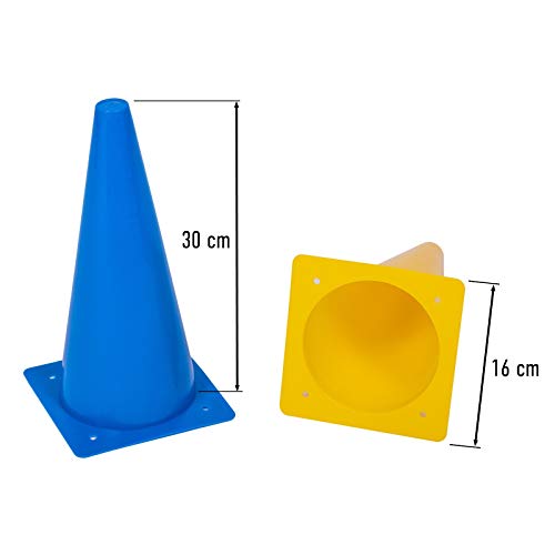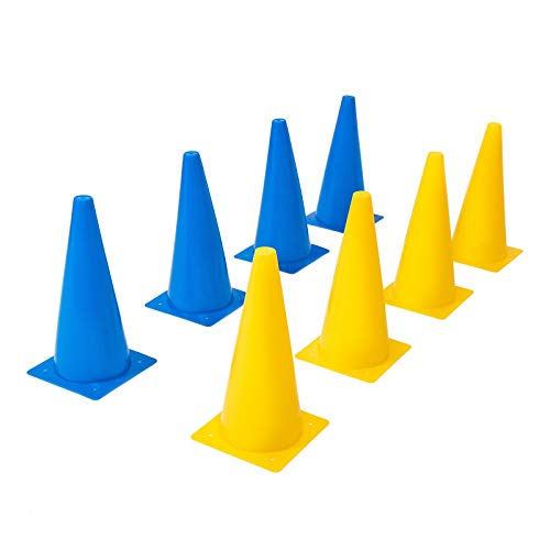 8LevelUp Pylons Set di 8 coni da 30 cm (4 gialli e 4 blu - flessibili, sicuri e robusti) con borsa per calcio, sport equestri, addestramento cani, addestramento cavalli, addestramento agilità per cani