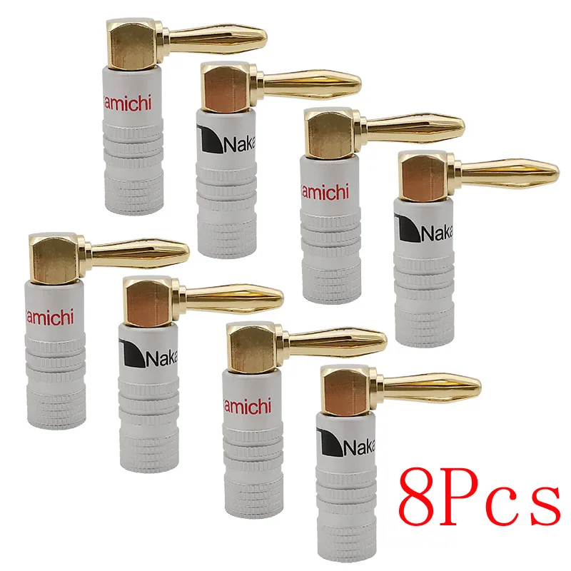 8Pcs Banana Plug Right Angle 4mm Gold-Plated Banana Male Plugs Connector with Screw Lock for Audio Jack Speaker Cable Black Red