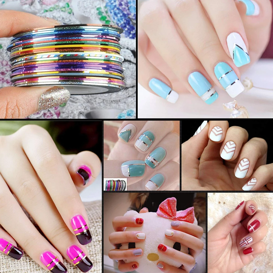 8pcs Mixed Color Nail Art Striping Line Decoration Adhesive Nail Sticker Decal Foil DIY Nail Art Tips Decoration Nail Tape 1mm