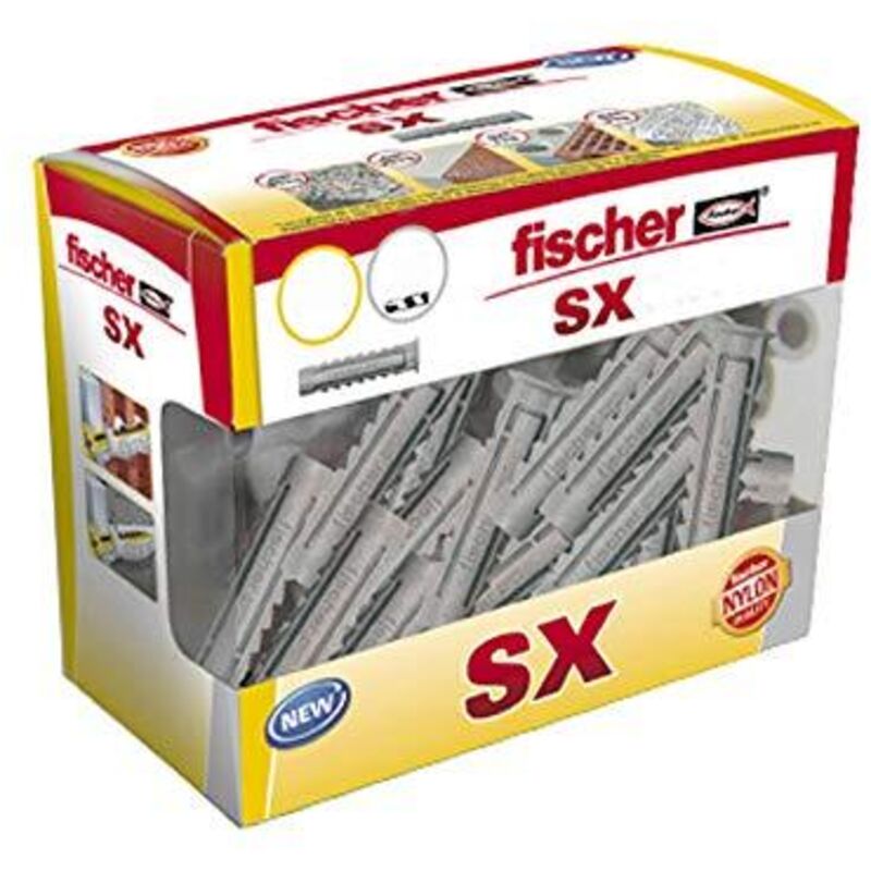 Tassello sx 8x40 diy 60 pz 553435 fischer. in formato scatola fai-da-te. potente fissaggio in nylon con espansione a quattro vie, con flangia. trasmissione ottimale della forza grazie all'espansione a quattro vie. ciò consente di bloccare carichi più elevati in materiali solidi e cavi. facile da montare: il bordo del tassello impedisce di spingerlo completamente nel foro. non c'è pressione di espansione sul collo del tassello. ciò significa che le piastrelle o l'intonaco non vengono danneggiati. applicazioni: portasapone, battiscopa, ecc. materiali: calcestruzzo, mattoni forati verticali, blocchi cavi in calcestruzzo leggero, lastre per pavimenti in mattoni e calcestruzzo, pietra naturale con struttura densa, pannello massiccio in gesso, mattone massiccio in calcestruzzo leggero, ecc.