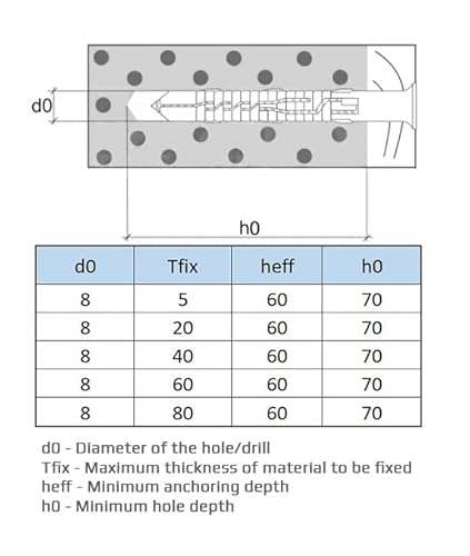 CONFEZIONE SUPER CONVENIENTE DA 50 TASSELLI E VITI! Forniti in confezioni da 50 tasselli e viti di grande valore, disponibili in 5 diverse misure, tra cui 8 mm x 80 mm.