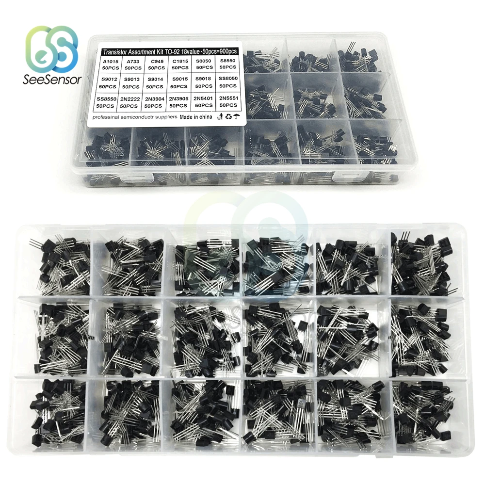 900pcs 18 Values TO-92 Transistor Assortment Assorted Kit S8050 S8550 S9012 S9015 S9018 2N2222 3906 3904 5401 5551 C945 A1015