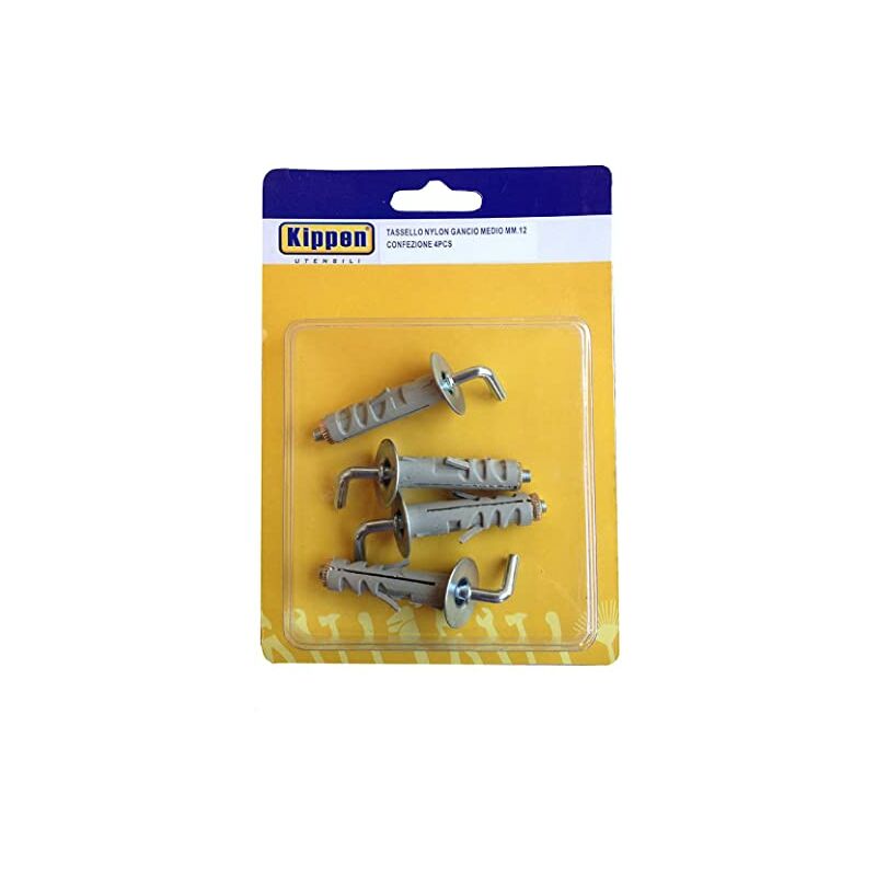 Kippen 9023A2 - Kit Composto da 4 Tasselli per Fissaggio ad Espansione da mm.12 con Gancio Medio