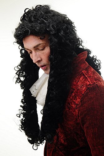 Opulenta parrucca da uomo, stile Barocco e Rinascimento- la parrucca molto voluminosa e dai ricci fitti è di colore nero e per Halloween, carnevale e teatro adorna le teste nobili di nobiluomini, principi, compositori eccezionali e il re Sole Luigi XIV. Codice colore: ZA103. Lunghezza: circa 70 cm.