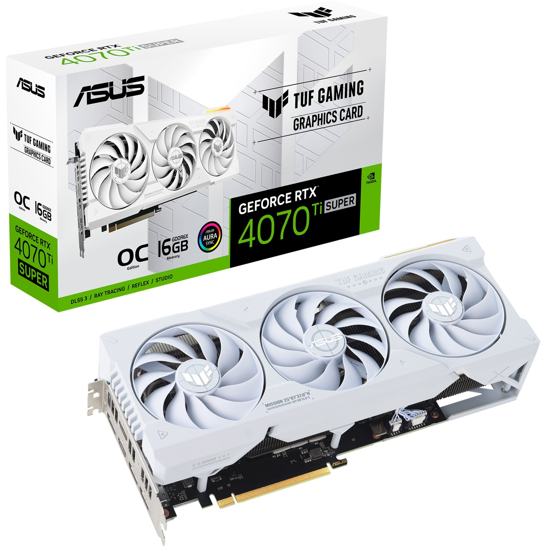 ASUS GeForce RTX 4070 Ti SUPER TUF GAMING OC WHITE è una scheda grafica di fascia alta alimentata dalla GPU GeForce RTX 4070 Ti SUPER di NVIDIA. La potente serie di schede grafiche GeForce RTX 40 si basa sull''architettura NVIDIA Ada, offrendo nuovi livelli di realismo di gioco, velocità ed efficienza delle prestazioni, RTX IO ed esperienze VR realistiche. Altre caratteristiche includono il ray-tracing in tempo reale, NVIDIA Ansel, con ampi strumenti per acquisire schermate nei giochi, nonché NVIDIA G-SYNC, G-SYNC HDR, DirectX 12 Ultimate, NVIDIA DLSS 3.5, PCI Express Gen 4, NVIDIA FreeStyle, NVIDIA ShadowPlay, NVIDIA Highlights, NVENC Gen 8, AV1 Encoder, API Vulkan RT e OpenGL 4.6. La GPU installata sul ASUS GeForce RTX 4070 Ti SUPER TUF GAMING OC WHITE ha 8448 core CUDA. La memoria GDDR6X da 16 GB ha un controller di memoria a 256 bit.
