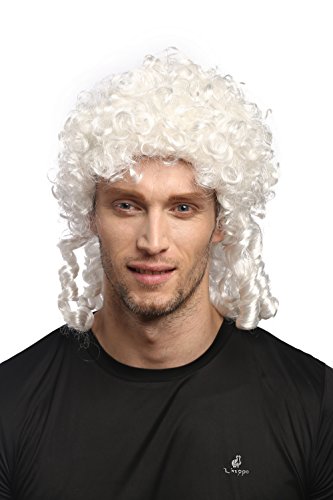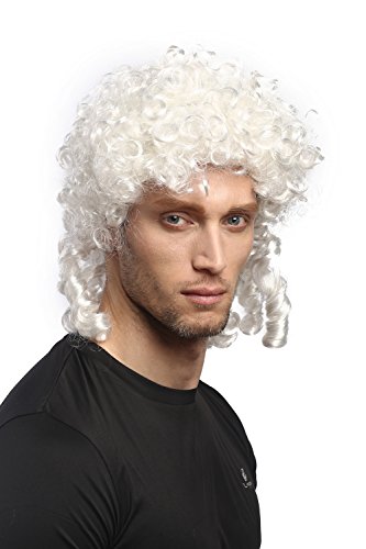 WIG ME UP - 91203-ZA62 Parrucca Uomo Donna Carnevale Halloween Barocco Rinascimento Riccia Ricci a cavatappo Bianco Code
