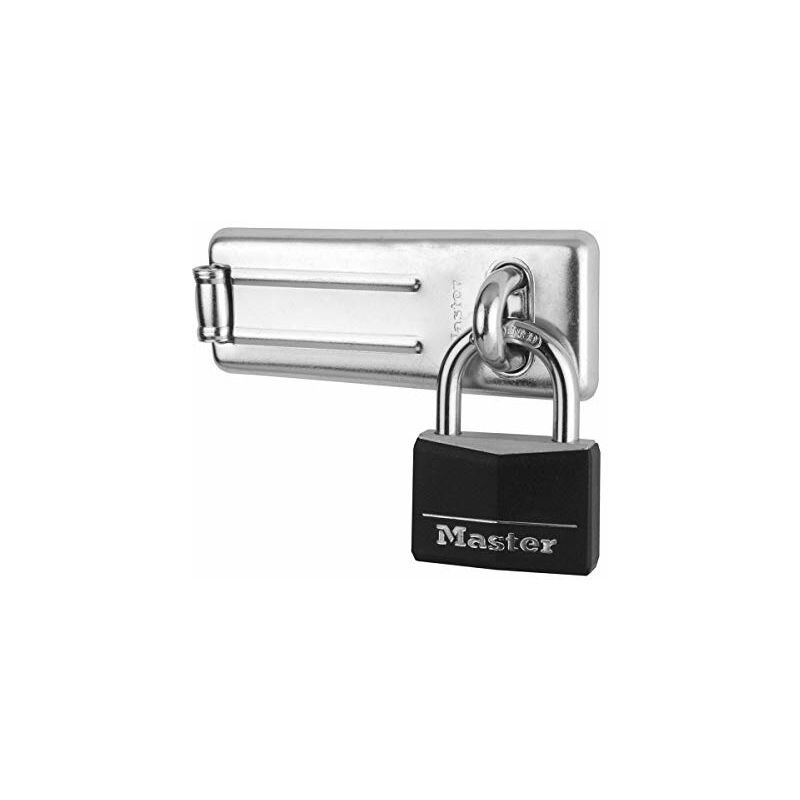 Master Lock 9150704EURDBLK Set Chiavistello a Barra Dritta e Lucchetto a Chiave, Nero Style: Hasp + Lucchetto Alluminio Involucro a Chiave