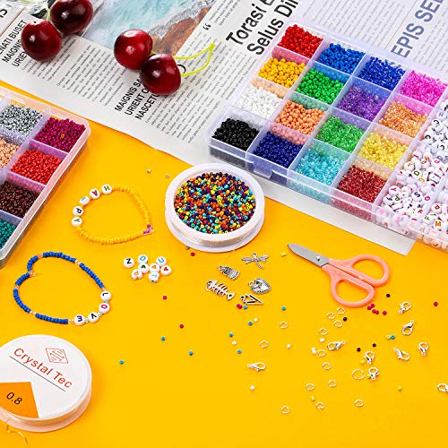 9200 Pezzi Perline Vetro di 3mm Perline Colorate Perline di Vetro Perline Allentate Colorate e Lettera dell' Alfabeto Beads per Fai da Te Mini Perle di Braccialetti, Collane, Bigiotteria