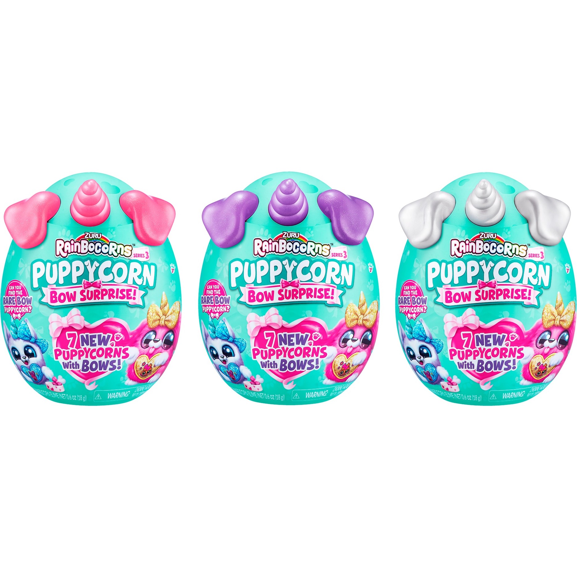I Puppycorns Bow Surprise sono i più belli Puppycorns di Rainboville. Questi cuccioli amano la moda e non vedono l''ora di trasferirsi nella nursery come un nuovo amico coccolone. Se il cuore è staccato, puoi scoprire cosa piace particolarmente all''amico cucciolo. Nel mini boo boocorn egg troverai la sua versione mini. Ci sono 5 sorprese in attesa nell''uovo di Rainbocorns - incluso l''amico a sorpresa con un fiocco. In totale, ci sono sette diverse figurine da collezionare.