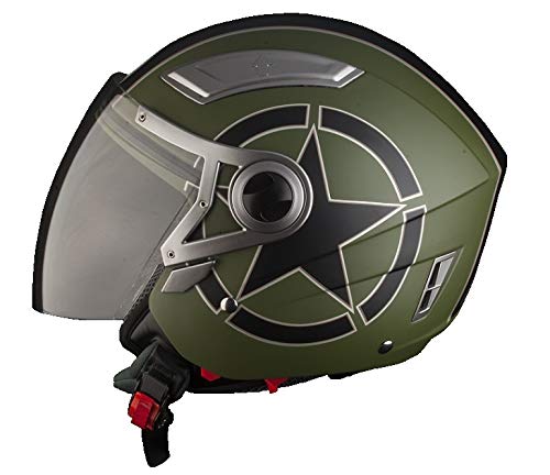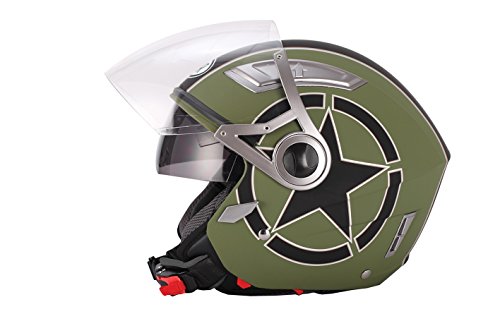 BHR 93291 Casco Doppia Visiera Modello Double 709, Star Verde Opaco, M