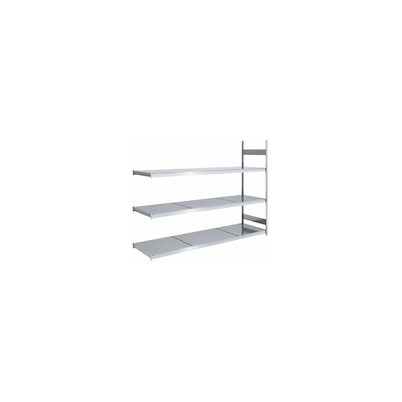 Scaffale a innesto con ripiani in acciaio, altezza 2000 mm, larghezza ripiani 2500 mm, profondità ripiani 800 mm, scaffale aggiuntivo. Fornitura = smontato. Altezza scaffale = 2000 mm. Tipo di scaffale = scaffale aggiuntivo. Materiale = acciaio, zincato. Struttura = a innesto. Profondità totale = 835 mm. Larghezza totale = 2520 mm. Portata campata = 1200 kg. Portata ripiani = 350 kg. Materiale ripiani = lamiera d'acciaio. Profondità ripiani = 800 mm. Larghezza ripiani = 2500 mm. Numero ripiani = 3 pz. Tipo di prodotto = scaffali a innesto a campata larga. Con ripiani in acciaio montati a filo. Ottimo sfruttamento dello spazio. Magazzinaggio flessibile grazie a un rapido montaggio a innesto. Componenti zincati. Ripiani in acciaio inseriti a filo. Larghezza ripiani 2500 mm = 2 x 750 mm + 1 x 1000 mm Dimensioni esterne Scaffale portante: larghezza ripiano + 70 mm, profondità ripiano + 35 mm. Scaffale aggiuntivo: larghezza ripiano + 20 mm, profondità ripiano + 35 mm. Portata