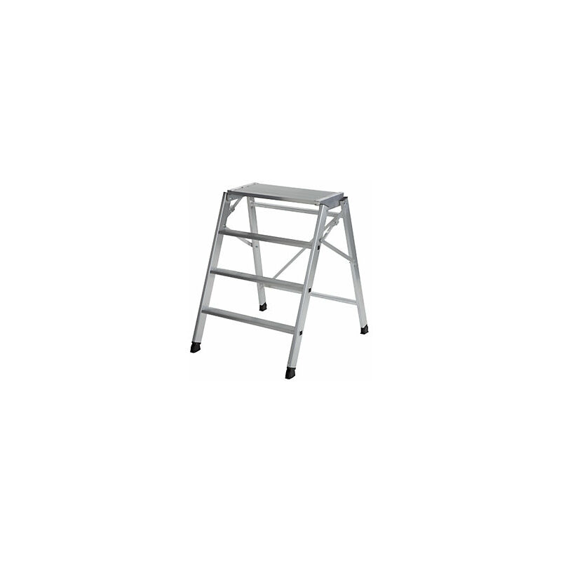 Scaletta pieghevole a palchetto, alluminio, profondità gradini 80 mm, 4 gradini. Fornitura = montato. Tipo di prodotto = scalette pieghevoli industriali. Profondità gradini = 80 mm. Caratteristiche = pieghevole. Salita = su un lato. N. gradini, piattaforma inclusa = 4 pz. Altezza piattaforma = 960 mm. Larghezza piattaforma = 650 mm. Profondità piattaforma = 300 mm. Materiale telaio = alluminio. Materiale gradini = alluminio, mandorlato. Profondità totale = 830 mm. Larghezza totale = 920 mm. Peso = 11 kg. Portata = 150 kg. Altezza di lavoro = 3000 mm. Si richiudono con un solo gesto. Robusti montanti in alluminio a sezione rettangolare. Gradini rigati antiscivolo, profondi 80 mm. Ottima aderenza e adattamento al pavimento grazie ai piedini di sicurezza nivello ®. Piattaforma superiore, 650 x 300 mm, in profilato di alluminio rigato. Salita su un lato.